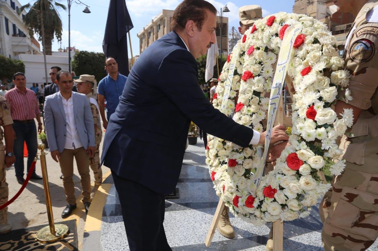 محافظ المنوفية يضع إكليلا من الزهور على النصب التذكاري بشبين الكوم