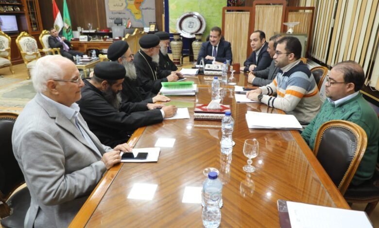 محافظ المنوفية يناقش اشتراطات الحماية المدنية لتأمين الكنائس ويقدم التهنئة للأخوة الأقباط بأعياد الميلاد المجيد