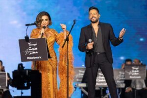 وشارك محمد حماقي أنغام على المسرح وقام بغناء دويتو أغنية “بين البينين” التي لحنها لها.