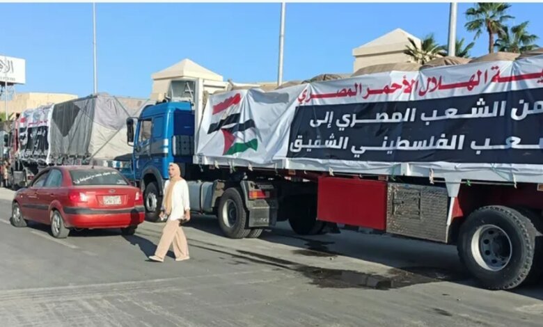 ولا تزال قافلة المساعدات الموجهة من مصر إلى غزة تنتظر قرب معبر رفح البري في انتظار التوصل لاتفاق يسمح بعبورها إلى داخل الأراضي الفلسطينية، فيما كشف مصدران مصريان لموقع “سكاي نيوز عربية” تفاصيل وطبيعة المساعدات التي تحملها القافلة.