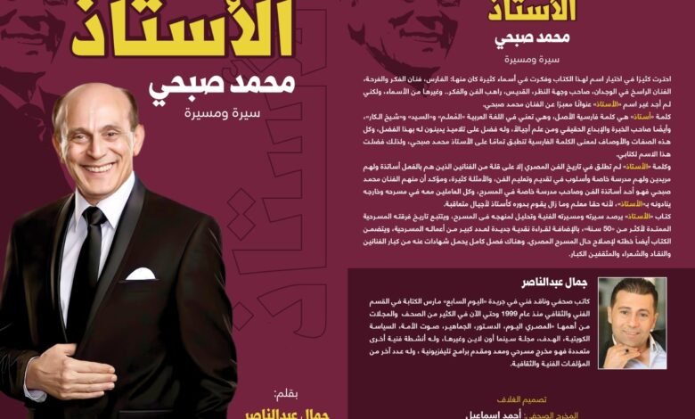 يقام يوم السبت الموافق 27 مايو حفل توقيع كتاب ” الأستاذ .. سيرة ومسيرة ” الذي تناول فيه الكاتب الصحفي والناقد الفني جمال عبد الناصر سيرة ومسيرة النجم الكبير محمد صبحي منذ طفولته وحتي الآن، يحمل الكتاب أسرار وقصص وحكايات جديدة من مسيرة الفنان محمد صبحي الشخصية والفنية .