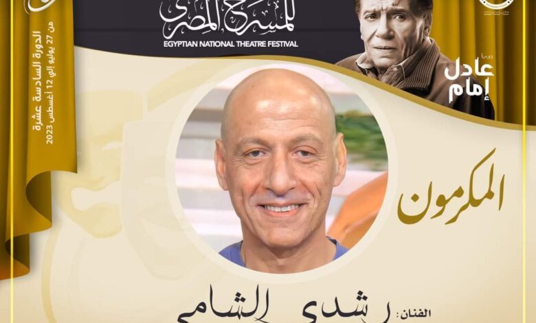 يكرم المهرجان القومي للمسرح المصري برئاسة الفنان محمد رياض خلال دورته، السادسة عشرة الفنان القدير رشدي الشامي، الذي جاء قرار تكريمه بإجماع اللجنة العليا للمهرجان، وجاء في حيثيات تكريمه أنه أحد أبناء المسرح المصري المخلصين له، و الذي قضي سنوات كثيرة من عمره علي خشبة المسرح القومي، وله الكثير من الأعمال المسرحية المتميزة علي مسرح الدولة .