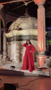 وأحدث تصميمات آمال شوكت تصميم جديد قدمته الفنانة القديرة صفاء جلال، فستان راقي من القماش الشيفون لون viva magenta تريند 2023/2024 مع اكسسوارات بسيطة، ذات مظهر رقيق، الميك اب شيماء عرابى، مستوحى من الزهور، كم طويل ، مع و سكيرت واسع لـ إحساس اكثر بالراحة والحرية مع Square neck مناسب لشكل الجسم، والفستان عبارة عن كسرات متداخلة تشبه الخطوط الموجودة على ورق الشجر لإظهار الجسم أكثر نحافة ، واختارت آمال شوكت الاكسسوارات تتماشى مع ديزاين، الميك اب والشعر، كانوا مناسبين التصميم الذي أعطى للفنانه صفاء جلال احساس الحرية و الانطلاقه.