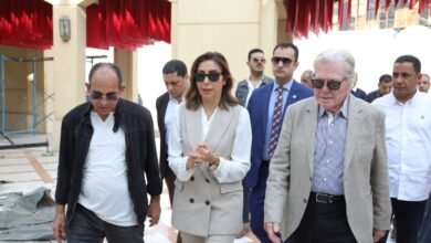 وزيرة الثقافة والفنان حسين فهمي يتفقدان اللمسات النهائية لتجهيزات افتتاح القاهرة السينمائي الدولي